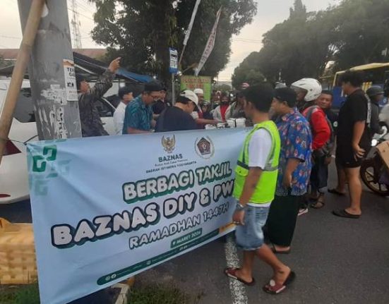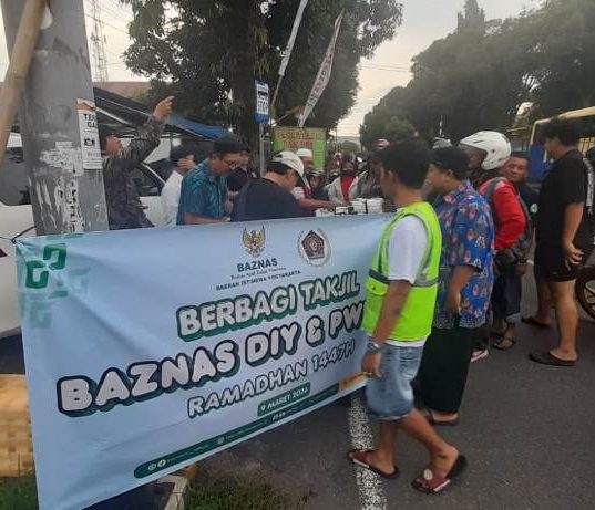 INTENS PLUS – YOGYAKARTA. Badan Akmil Zakat Nasional (Baznas) Daerah Istimewa Yogyakarta Bersama Persatuan Wartawan Indonesia (PWI) DIY menggelar berbagi takjil.