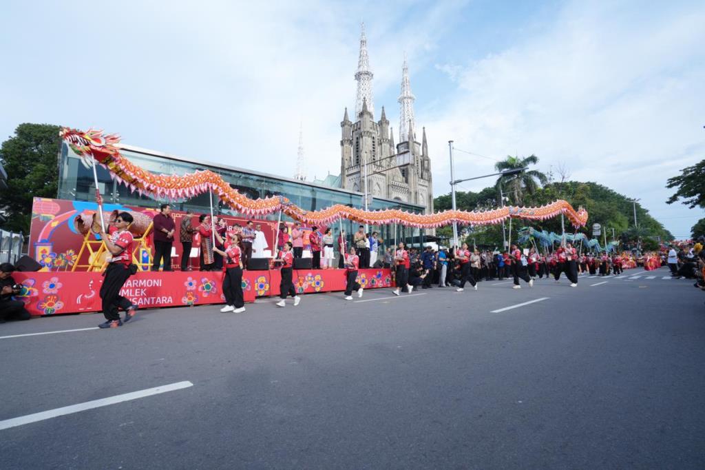 Parade Imlek Nusantara 2026 menghadirkan perpaduan tradisi Tionghoa dan budaya Nusantara dalam satu panggung kebersamaan. Kegiatan diawali dengan long march dari kawasan Gereja Katedral Jakarta menuju Lapangan Banteng.