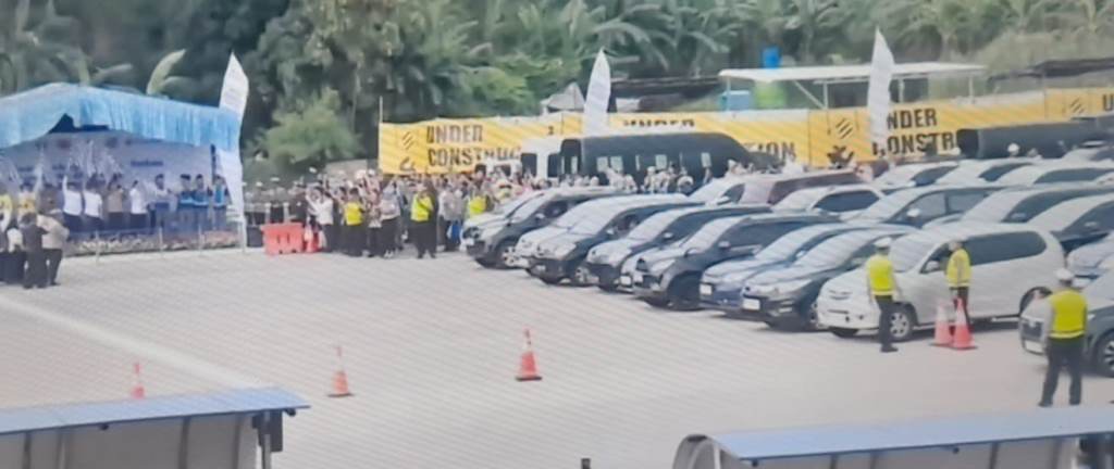 Ada pemandangan menarik sebelum bendera start dikibarkan. Jenderal Sigit menyempatkan diri berjalan kaki menghampiri deretan mobil pemudik yang sedang mengantre di depan gerbang tol.