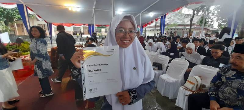 Salah satu pemudi berprestasi penerima penghargaan Gold Award dari Pabelan, Magelang, Fathia Sari Nurhaniya, mengaku senang sekali menerima penghargaan tersebut.